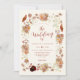 Casamento outono de flor selvagem de vassoura legante Convite com roteiro de na moda de laranja queimado e com lindas flores silvestres secas a cores pintadas manualmente, organizadas num design de arco. Modelos fáceis de usar para adicionar todos os detalhes essenciais do dia do casamento. Lindas flores aquáticas perfeitas para casamentos outono em laranja queimada, terracota, marrom, laranja, roxo amarelo, rosa e verde paleta de cores e funcionam muito bem para um tema de casamento de tons sujos. Arte original da artista Catherine Sweetman