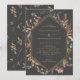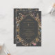 Um convite elegante para o casamento com flores silvestres de aquarela e folhas em volta de uma moldura geométrica dourada em um fundo de cinza escura. Personalize seus detalhes com texto dourado. O reverso apresenta um padrão de flores silvestres de aquarela também em um fundo de cinza escura. Perfeito para um casamento outono.