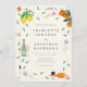 Celebre o seu casamento bíblico de verão com este convite de casamento bizarro e moderno, feito com botânicos vibrantes e um tema refrescante para os citros. Limões e laranjas pintados à mão, flores silvestres, folhas, folhagem, notas musicais, flautas de vinho espumante e obras de arte originais de queijo criadas pela talentosa artista Catherine Sweetman. A elegante tipografia moderna, aliada às aquarelas brancas, cria uma atmosfera quente e alegre, definindo perfeitamente o tom de sua celebração. A paleta colorida se rompe com o zest de limão, laranja, amarelo, e pistas de azul, verde, rosa e roxo, evocando o espírito descuidado de um dia de verão. As ilustrações encantadoras das garrafas espumantes, enfeitadas com a noiva e as iniciais do noivo, acrescentam um toque personalizado a essa design especial. Com modelos fáceis de personalizar, você pode adicionar sem esforço seus nomes, data de casamento e todos os detalhes essenciais, criando um convite tão único quanto sua história de amor. Este convite à aquarela é a escolha ideal para casais que procuram uma estética divertida, fresca e vibrante para o seu casamento.