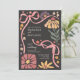 Coquette inspirou o tema do casamento com arcos cor-de-rosa e flores silvestres sobre um fundo escuro.