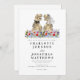 Traga um toque de diversão Jurássica para seu dia especial com este convite de casamento teimoso com dinossauros! Se você é um casal que ama dinossauros, esta é a maneira perfeita de mostrar sua paixão com uma design elegante e iluminada. O convite apresenta uma charmosa noiva T-Rex e um noivo orgulhosamente em um belo campo de flor silvestre, cercado por florais de verão vibrantes em tons de rosa, roxo, verde, azul, laranja, pêssego e amarelo. Ideal para um casamento de primavera ou verão. Projetado com moderno capricho, o roteiro fácil de personalizar permite que você adicione seus nomes, data de casamento e todos os detalhes importantes para criar um convite único e inesquecível. Além disso, um código QR é incluído para RSVPs on-line fáceis, de modo que seus convidados possam avisar rapidamente e convenientemente que eles estarão participando. Com uma obra de arte original da talentosa artista Catherine Sweetman, esta design única combina humor com romance, fazer-a uma escolha perfeita para qualquer casal que ama dino. Torne o seu dia de casamento ainda mais memorável com este convite divertido e encantador!