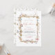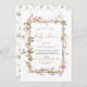 Um convite bonito para chás de fraldas de flor silvestre, que inclui uma estrutura de ouro com flores silvestres e fontes modernas de caligrafia de coral. O reverso tem um padrão de flores silvestres de aquarela.