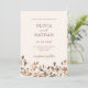 Este convite para casamento simples e feito de vassoura apresenta um fundo bege mudo e neutro e flores silvestres castanhas e terracotta de outono, com a sua foto no verso enquadrada por uma camada de flor silvestre correspondente.