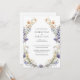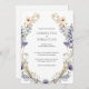 Flores azuis pálidas e lilás, com folhas verdes sábias e sotaques amarelos e laranja, trazem uma sensação romântica e natural à paleta. Os tons sem som mantêm o aspecto simples e mínimo perfeito para eventos de vassoura, madeira e primavera ou jardim de verão. Uma coroa de flores boho rodeia seu nome e detalhes do evento, mostrados em uma fonte elegante. É um convite para uma celebração onde a beleza das flores selvagens encontra a graça da simplicidade, criando uma vibração que é única sua. Prepare-se para fazer uma declaração e dar o tom para um casamento que é tão inesquecível como a sua história de amor
