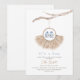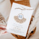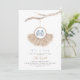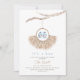Celebrar a mãe com este belo convite de chá de fraldas de vassoura com uma ilustração aquática de uma coroa de grama com calçados de bebês azuis.