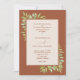 A Elegante cor d'água verde de folhagem botânica, seus detalhes de casamento sobre os convites de casamento de terracotta com suas informações de cerimônia em cartazes de chic em um fundo de marfim. CORRESPONDENDO a itens na nossa loja.