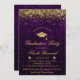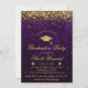 Convites Bokee roxo e Festa de formatura brilhante Dourada