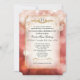 PALETA DE CORES: branco, rosa claro, coral, vermelho rosa. COLEÇÃO DE DESENHOS: Um convite para uma festa de 15 anos, jantar formal de mis quince anos ou Quinceanera, redigido pelos pais. Realmente adequado para um evento formal de gala, casamento ou recepção, este desenho foi criado à mão para mostrar um foco suave, brilho, luzes cintilantes de uma imagem bokeh cintilante. Especialmente perfeito para aniversários perto das festas de Natal e Ano Novo. Combinado com uma moldura com efeito de glitter dourado e trabalho de pergaminho em estilo Art Nouveau, este desenho sutil e elegante é simples e bonito. É um estilo moderno e com grande elegância. No verso, há uma repetição do desenho com o seu monograma grande e os nomes dos noivos. A redação personalizada do convite pode ser facilmente personalizada com os campos de modelo simples fornecidos. Disponível em uma variedade de fundos coloridos. Basta entrar em contato conosco e