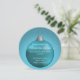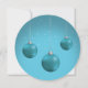 Este convite de festa de feriado festivo apresenta uma bolha de Natal azul criada digitalmente. O fundo é um lindo gradiente azul com alguns flocos de neve. Do outro lado, há mais três bolas azuis de Natal penduradas em uma corda prateada.