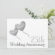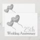 Convite moderno de aniversário de casamento de prata com balões de coração de prata em um fundo branco.