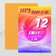 Bola de Basquete Junta-a no Convite de Aniversário Esportivo. Este design moderno tem o texto "Vamos para cima" e uma bola de basquete em um fundo vívido e vibrante e colorido. O tema do basquete o torna perfeito para o aniversário de um fã de basquete.