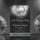 Festa de aniversário 60 da Silver Ball Convite de festas 70. O Convite de aniversário Silver e Black 60th é perfeito para uma moderna Festa de aniversário 60th. Os produtos correspondentes personalizados podem ser criados pelo Designer por solicitação.