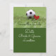 Bola de futebol com coração vermelho em convite de casamento verde salvar a data