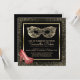 convites de festas de mascarada de 16 anos, elegantes, pretos e dourados, com sotaques falsos de ouro de champanhe- Moldura metálica dourada, falso, com fundo preto sólido, contra uma borda preta de carvão com aspecto falso de ouro de champanhe. Uma cor de ouro metálico, design de máscara de mascarada, enfeita o topo. Na parte inferior, no canto esquerdo, um par de na moda, calçados de salto alto com brilho rosado suave são exibidos. Leituras Por favor Junte-se ao Mascarada Honorando em letras douradas com o nome personalizado abaixo em chic, script gold. Um simples divisor de ouro separa o nome de outros detalhes personalizados de dezesseis participantes, em letras maiúsculas, incluindo informações de RSVP. As cores e estilos do texto podem ser alterados para se adequarem a você. Voltar tem um quadro correspondente a um fundo preto sólido. Lindo para os estilos de festa de aniversário ou Deco de Arte, como o tema preto e ouro, assim como as festas de tema do Excelente Gatsby.