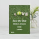 Bola de tênis com palavra de carta de amor na grama verde salvar a data Cartão-postal
