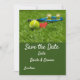 Bola de tênis está na grama verde com amor casamento Convite para salvar a data