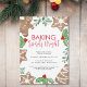 Este convite de festas de troca de biscoitos de Natal é decorado com biscoitos de aquarela, sagrado, com névoa e com bagas. Diz que "Bright das Espíritos Baking" é tipografia de na moda. Há um padrão de biscoito de gengibre nas costas. Facilmente personalizável. Original Watercolor © Michele Davies.