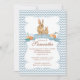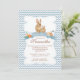 Bonito coelho coelho chá de fraldas com um coelho mãozinho com um coelho bebê com um padrão zigzag moderno e moderno em azul. Nosso doce convite para coelhinhos é perfeito para um chá de fraldas de garotos e também apresenta uma faixa floral moderna e é perfeito para um chá de fraldas de tema páscoa, chá de fraldas primavera ou chá de fraldas de verão. Visite nosso compro para ver este convite contemporâneo para coelhos coelhos em uma variedade de cores para um chá de fraldas de bebês, chá de fraldas de meninas ou um chá de fraldas neutro em relação a gêneros.