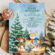 Convites de chá de bebê de inverno bonito, apresentando um fundo de neve florestal com os animais mais doces da floresta.