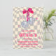 Nosso adorável "Retro Groovy Coquette Disco Balls Birthday Invitation" apresenta dois ornamentos de bola pendurados em um arco de fita cor-de-rosa contra uma cinza ondulada e fundo bege. Se precisar de outro produto ou personalização correspondente, entre em contato comigo.
