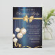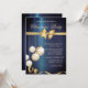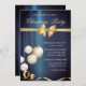 Um convite elegante para festas de férias com bolas de Natal e arco de ouro em fundo azul escuro. Estes belos convites de Natal são perfeitos para convites de festas de janto de Natal, convites para troca de presentes de Natal, angariadores de fundos de Natal, convites para bolas de férias e outros eventos realizados durante o mês de dezembro. Use apenas os campos modelo para adicionar suas próprias informações de evento.