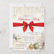 Bolas de Natal de ouro, arco vermelho, presentes e flocos de neve. Estes belos convites de Natal são perfeitos para convites de festas de janto de Natal, convites para troca de presentes de Natal, angariadores de fundos de Natal, convites para bolas de férias e outros eventos realizados durante o mês de dezembro. Use apenas os campos modelo para adicionar suas próprias informações de evento.