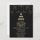 Um convite elegante para festas de férias com bolas de Natal de ouro e óculos de champanhe em fundo preto. Estes belos convites de Natal são perfeitos para convites de festas de janto de Natal, convites para troca de presentes de Natal, angariadores de fundos de Natal, convites para bolas de férias e outros eventos realizados durante o mês de dezembro. Use apenas os campos modelo para adicionar suas próprias informações de evento.