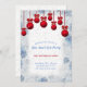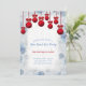 Borda de lavanda em flocos de neve e bolas de Natal vermelhas e faíscas de ouro