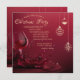 Vidro de vinho elegante com bolas de Natal de ouro sobre fundo vermelho. Estes belos convites de Natal são perfeitos para convites de festas de janto de Natal, convites para troca de presentes de Natal, angariadores de fundos de Natal, convites para bolas de férias e outros eventos realizados durante o mês de dezembro. Use apenas os campos modelo para adicionar suas próprias informações de evento.