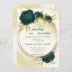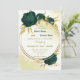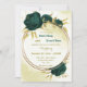 Bonito convite para o casamento, com flores verdes esmeraldas e folhas de ouro em círculo dourado. São simulados os detalhes do brilho dourado. É adequado tanto para os convites para o casamento como para o noivado. PARA MAIS PRODUTOS CORRESPONDENTES, clique na coleção acima ou entre em contato comigo