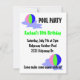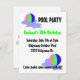 Um design de aniversário de piscinas divertida com bolas de praia coloridas em listras cor-de-rosa, verdes e azuis. Personalize com todas as informações de seu próprio partido, conforme desejado.