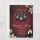 Um convite elegante para festas de Natal com bolas pretas de Natal e flocos de neve em fundo vermelho. Estes belos convites de Natal são perfeitos para convites de festas de janto de Natal, convites para troca de presentes de Natal, angariadores de fundos de Natal, convites para bolas de férias e outros eventos realizados durante o mês de dezembro. Use apenas os campos modelo para adicionar suas próprias informações de evento.