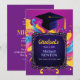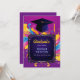 Celebrate your graduate with a vibrant, modern announcement bursting with color and personality. This bold design features energetic swirls, a celebratory cap icon, and a clean central frame that highlights your student’s name and achievements. Every line of text is fully customizable—perfect for high school, college, or any milestone worth cheering for. A standout choice for families who want something bright, joyful, and unforgettable.