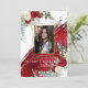 Saudações de Vossas Estações Fotográficas - Foto Dourada tripla - apresenta um grande traço de tinta em negrito em um filme metálico vermelho na diagonal da página e atrás do quadro fotográfico. Eucalyptus verde e buquês de flores de pénia vermelha e de creme de marfim que gravam os cantos. Design criado por © WhimsicalArtwork™ Personalize texto, estilo de fonte, cor e tamanho. Criamos que esta modelo é para facilitar a personalização com suas próprias informações. Esta é parte de um Conjunto de Papelaria de Casamento com casamento, chá de fraldas e outros artigos de papelaria.