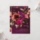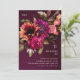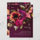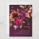 Estes convites de casamento elegantes e dramáticos apresentam flores corajosas e coloridas (incluindo rosa, girassol, dália, tulipa e muito mais) em um rico fundo burgundy / roxo para um visual floral sofisticado e clássico.