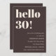 This birthday invitation in brown features bold modern typography with a clean, minimalist layout designed to celebrate a milestone birthday in a stylish way. The large “Hello 30!” headline creates an eye-catching focal point while the neutral color palette keeps the look timeless and elevated. Personalized with the guest of honor’s name, date, time, and location, it works beautifully for chic adult birthday parties and modern celebrations. Designed for hosts who love simple design with strong visual impact.