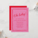 This bold pink invitation brings a fun, energetic feel to your baby shower, with its playful Oh baby! lettering and hand-drawn red border. The bright color palette sets a cheerful tone perfect for celebrating a baby girl or any upbeat shower theme. Your event details stand out clearly in the center, making the invitation both eye-catching and easy to read. This baby shower invitation is ideal for hosts who want something modern, lively, and full of personality. Let it help you set the tone for a joyful gathering with friends and family.