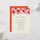 Simples, mas adorável, modelo de convite de casamento na fronteira da plumeria. Este design floral ousado apresenta uma plumeria rosa e laranja realista, também chamada de frangipani, que faz uma grande borda ao longo do topo das cartas. Texto impresso no estilo elegante de caligrafia para nomes, com impressão em maiúsculas para o resto da informação. Incluir espaços onde for necessário e um endereço de recepção pode ser adicionado se diferente da cerimônia. O reverso é vermelho-laranja-escuro sólido para combinar com os centros das flores.