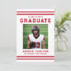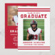 Celebrate your graduate’s milestone with this bold athlete-inspired graduation party invitation, featuring classic red varsity stripes along the top and bottom and strong collegiate-style red typography for a timeless sports look. The front showcases the graduate’s photo alongside their name, school, and graduation year in a clean, structured layout that highlights their achievement with confidence and pride. The back features a horizontal photo at the top, with space below for graduation party details including the date, time, location, and RSVP information, making it easy to share celebration details with family and friends. Ideal for high school and college athletes, senior sports players, and graduates with a love for classic varsity style, this photo graduation party invitation offers a polished and memorable way to invite guests to celebrate their accomplishment.