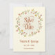 Este casamento ousado e retrô, Save The Date Card apresenta uma dica de flores aquáticas em tons neutros e caligrafia moderna. Um elegante olhar floral ousado sobre um fundo neutro.