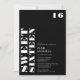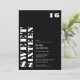 Branca e simples em preto doce 16 convite para comemoração da festa de aniversário escrito em caracteres negros de tamanho excessivo em branco