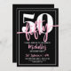 pink 50th birthday party invitationbold script calligraphy typographymodern contemporary uniqueblack white bright pinksimple minimalist minimalfifty years old fiftiethfor her girly girl femininechic stylish trendy elegant cuteadult milestone celebration any agefun daughter womens