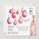 Ovos de Páscoa bonitinhos pendurados na corda de ouro e uma garrafa de champanhe cor-de-rosa aparecem na frente deste convite de Brunch de Páscoa personalizável. Há espaço para adicionar mais informações aos seus convidados no verso deste cartão. Aproveite e Felz pascoa!