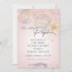 "Bolhas de Arco-Íris Prontas para a Pop Girl Chá de fraldas, Convite Rosa." Bolhas e borbulhas, belas bolhas arco-íris flutuam sobre esta design com a letra de texto da tipografia, "Ela está pronta para Pop!" Uma explosão de brilho dourado onde uma bolha surgiu adiciona um toque de brilho e brilho. Concebido por artista e designer com licença internacional, Audrey Jeanne Roberts, copyright.