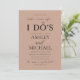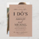 Este Convite à Festa de noivado dos Casais modernos é tematizado para Bolhas e Brews antes de I Do, em um design castanho-esbranquiçado tenso e neutro, com o "O" de "I DO" com um diamante, para fazer um anel, e com letras manuais a tipografia moderna da escrita. A parte traseira da placa apresenta sua foto favorita do noivado. Copyright Elegant Invites, todos os direitos reservados.