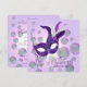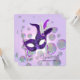 Convites de festa de máscaras com bolhas rosa e roxo e máscara de penas. Este convite de festa de máscaras em azul turquesa e roxo é facilmente personalizado para o seu evento, basta adicionar os detalhes do evento, estilo de letra, tamanho e cor da fonte e texto.