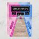 Um esporte de boliche temido Baby Gender Reveal convite de festas. Uma beco azul e cor-de-rosa é decorada com bolas de boliche, e uma tela clara neon que lê Revolução de Gênero e equipe azul e rosa. Uma bola de boliche rosa é vista espalhando os pinos. O texto branco da tipografia no corredor diz Bebê seu sobrenome.