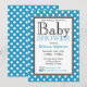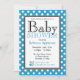 Convites de chuveiro de bebê, bonito e na moda, com bolinhas brancas sobre azul. Personalize com os detalhes do chá a ser da Mamãe e escolha o tipo de papel também!