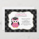 Uma aula tão bonita de graduação do jardim de infância de 2013 ou convite para a graduação do ensino fundamental apresentando uma bolinhas adorável coruja rosa vestindo um roupão de graduação e boné de formatura em um fundo de poca de cinza e preto pontilhado com um correspondente. Personalize com suas informações de partido e você está pronto para ir! Correspondência notas de agradecimento, autocolantes e postagens disponíveis em nosso compro em www.celebrateitinvites.com ©JW Ilustrations