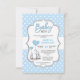 Convites Bolinhas branca Cinza azul Chá de fraldas de elefa